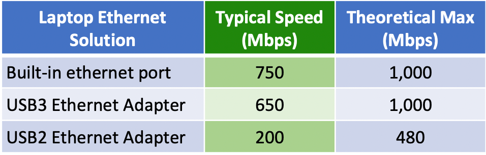 - Many USB adapters will limit the maximum network speed considerably (see the chart below)